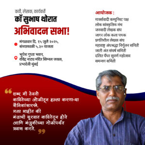 अण्णाभाऊ यांच्या प्रमाणेच सुभाष थोरातच्या साहित्यातून ही आंबेडकर व मार्क्स एक साथ बोलायचे..!