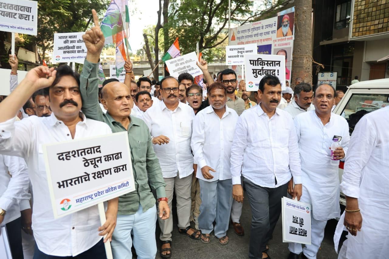 प्रदेश काँग्रेसचे मुख्यालय टिळक भवन येथे पहलगाम हल्ल्यातील मृतांना दोन मिनिटे मौन राहून श्रद्धांजली अर्पण करण्यात आली व त्यानंतर मोर्चा काढण्यात आला. पाकिस्तान मुर्दाबाद, भारत माता की जय अशा घोषणा देत शेकडो काँग्रेस कार्यकर्त्यांनी पाकिस्तान पुरस्कृत दहशतवाद्यांनी पहलगाम येथे केलेल्या भ्याड हल्ल्याचा निषेध केला. यावेळी प्रसार माध्यमांशी बोलताना काँग्रेस प्रदेशाध्यक्ष हर्षवर्धन सपकाळ म्हणाले की, पहलगाम हल्ल्याप्रकरणी सरकारने सर्व पक्षीय बैठक घेऊन एकमुखी निर्णय घ्यावा, अशा प्रकारचा कोणताही दहशतवादी हल्ला खपवून घेतला जाणार नाही हा संदेश यातून गेला पहिजे. या कठीण प्रसंगी आपण सर्व भारतीयांनी एकत्र येऊन या हल्ल्याचा निषेध केला पाहिजे, असेही सपकाळ म्हणाले.
