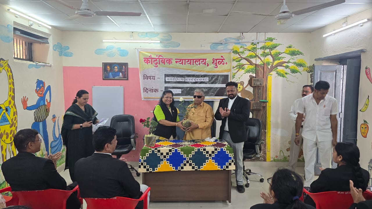 मराठी भाषा पंधरवडा संवर्धन दिनानिमित्त कौटुंबिक न्यायालय, धुळे येथे दिनांक २८ जानेवारी २०२६ रोजी दुपारी २ वाजता एक विशेष कार्यक्रम उत्साहात संपन्न झाला. कार्यक्रमाचे आयोजन कौटुंबिक न्यायालयाच्या वतीने करण्यात आले होते. यावेळी अध्यक्षस्थानी कौटुंबिक न्यायालयाचे न्यायाधीश स्वर्णिता बी. महाले, प्रमुख पाहुणे बार असोसिएशनचे अध्यक्ष अ‍ॅड. राहुल बी. पाटील तर प्रमुख वक्ते जगदीश देवपूरकर हे उपस्थित होते.
