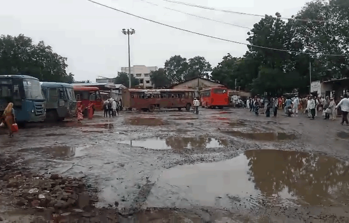 शहादा बसस्थानकातील खड्डे आणि चिखल — निधी मंजूर असूनही कामाला विलंब!?